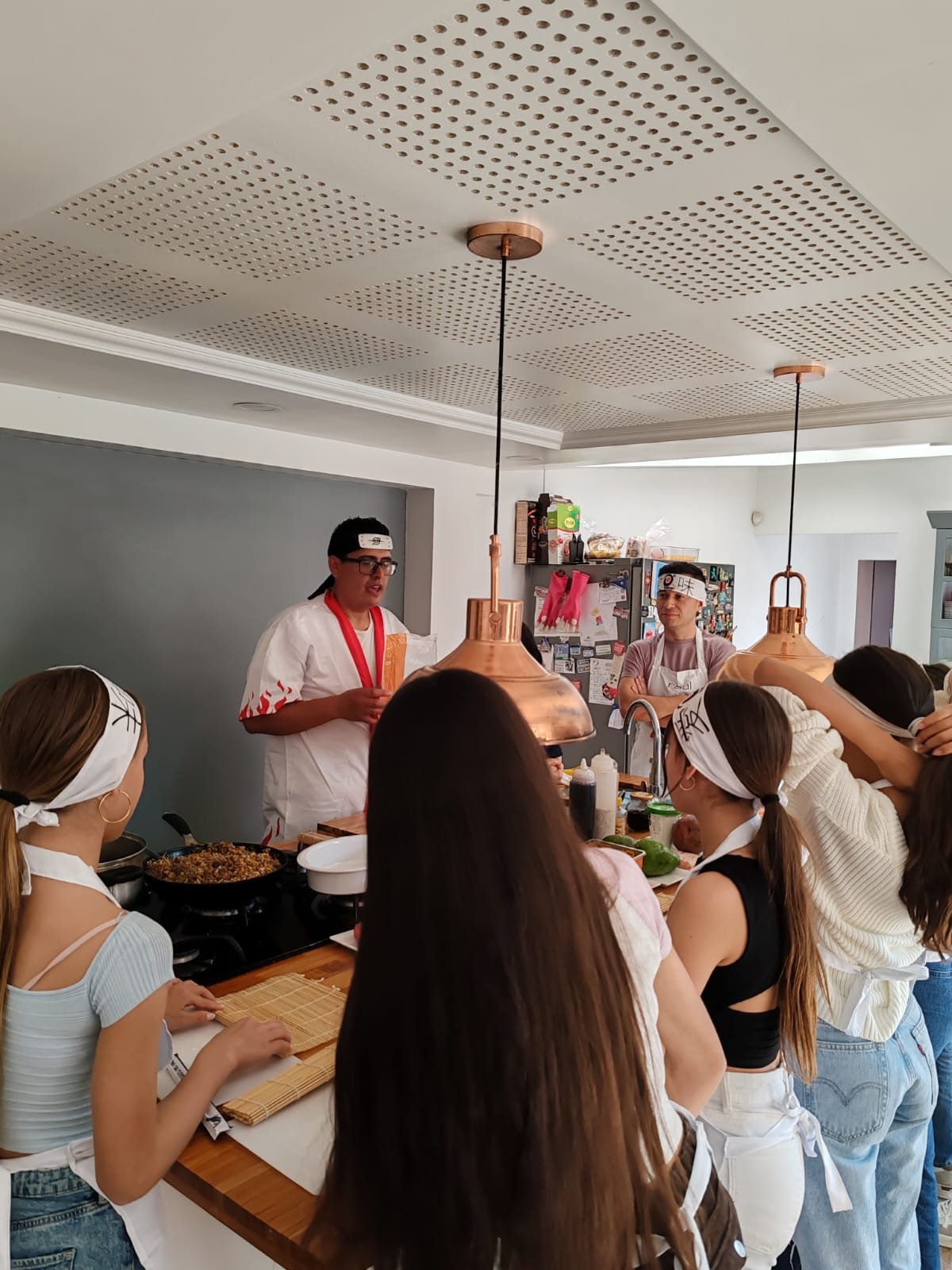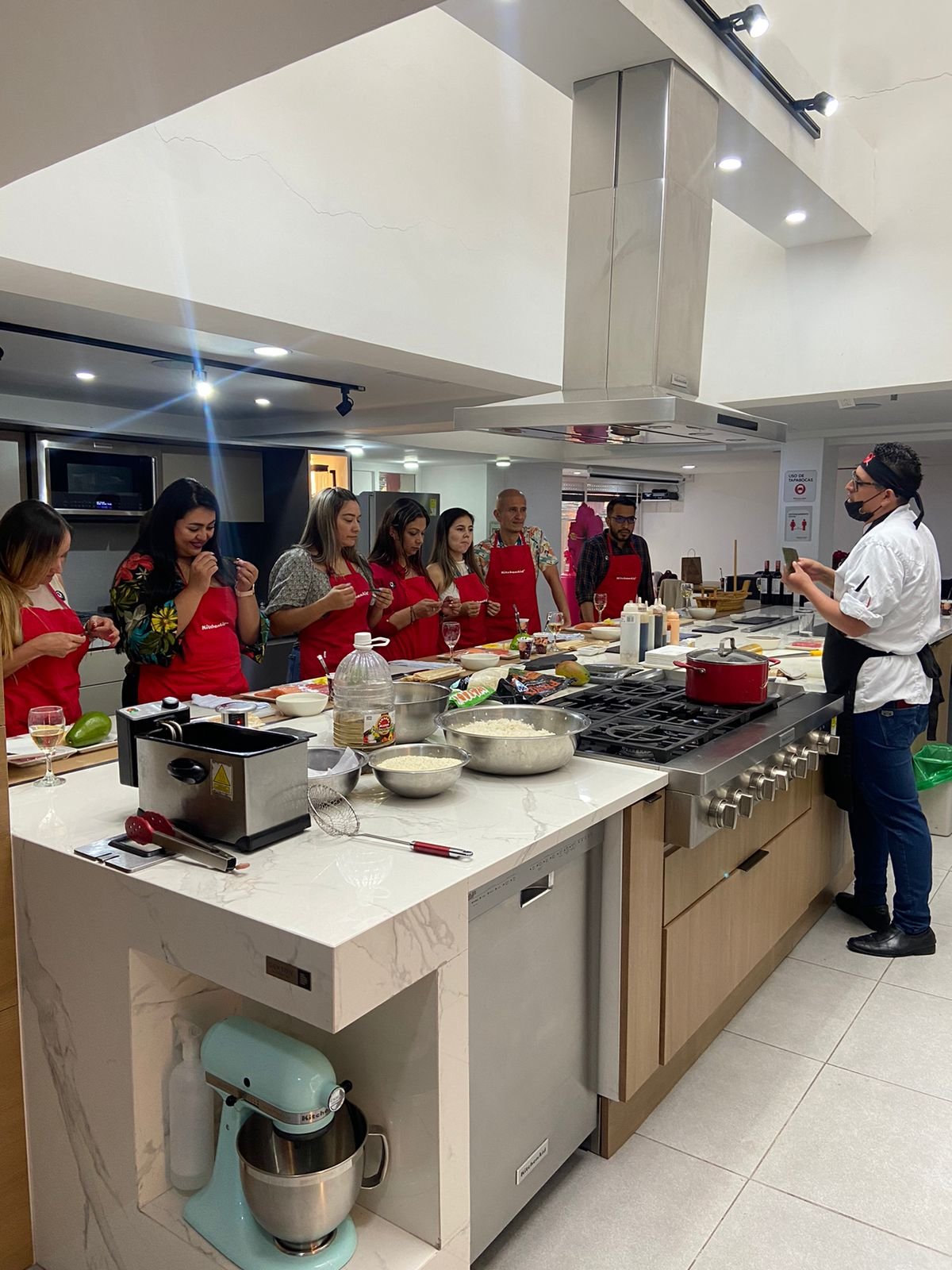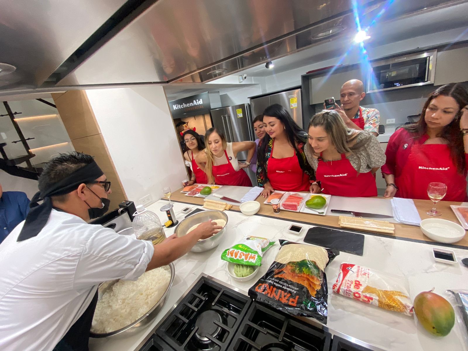 Contarás con ingredientes frescos y utensilios profesionales para disfrutar una experiencia completa. La banda y el delantal pueden adquirirse por separado.