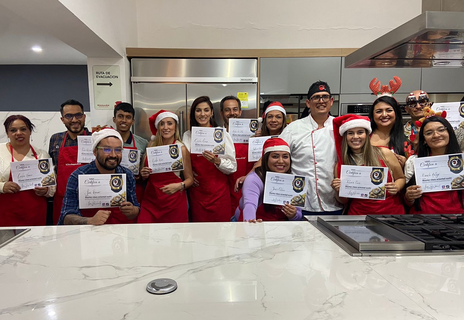 Contarás con ingredientes frescos y utensilios profesionales para disfrutar una experiencia completa. La banda y el delantal pueden adquirirse por separado.
